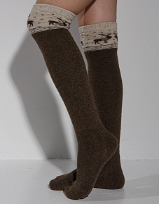 Теплые гольфы из 100% шерсти темно-коричневые с рисунком