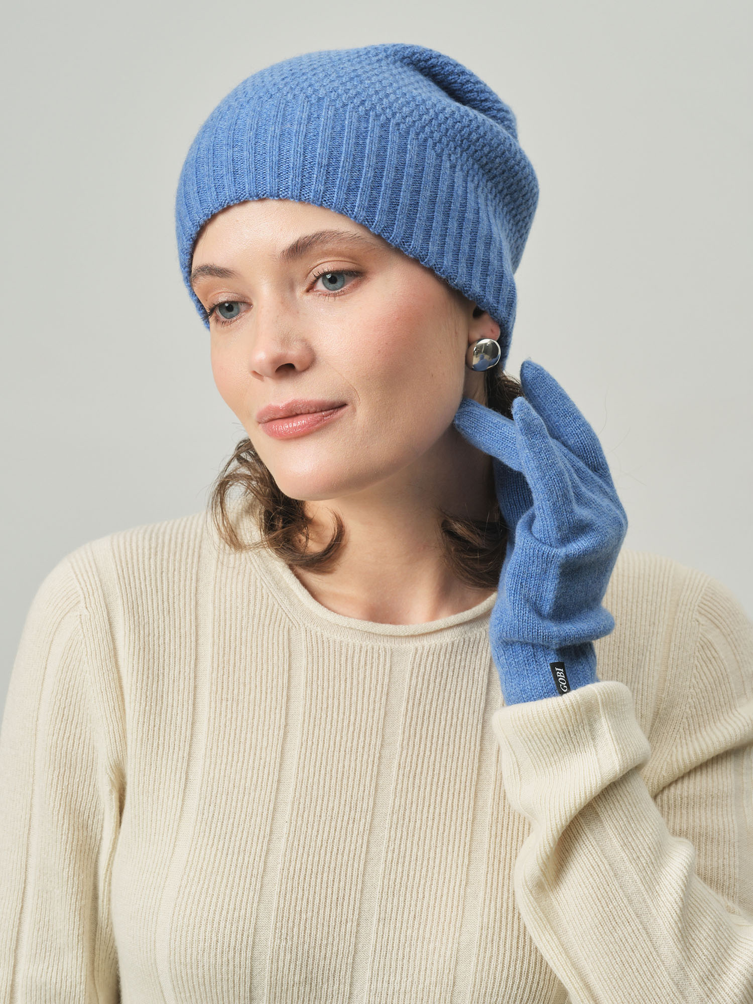 Почувствуйте невесомое тепло настоящего монгольского кашемира. Синяя шапка KW101172-F — это не просто аксессуар, а инвестиция в комфорт и безупречный зимний образ. Мягкая, как облако, она деликатно согревает, не перегревая, и дарит ощущение «второй кожи». Лаконичный дизайн и благородная текстура делают модель универсальной для повседневных и более элегантных образов. Это аксессуар, который сохраняет форму, мягкость и актуальность годами.