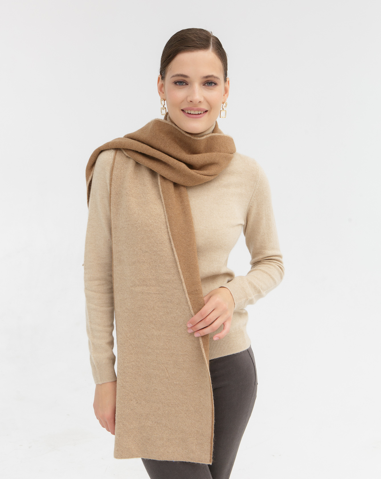 Легкий, мягкий и приятный к коже шарф хорошо драпируется и подходит для разных способов ношения. Универсальный аксессуар, который одинаково гармонично смотрится с пальто, куртками и трикотажными изделиями.