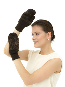 Варежки из пуха яка с рисунком UL темно-коричневые