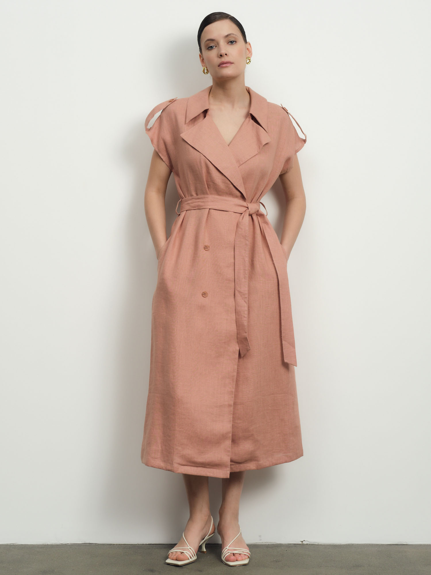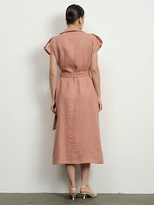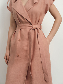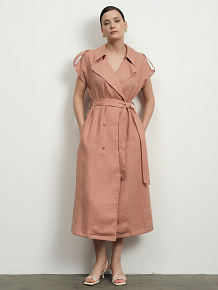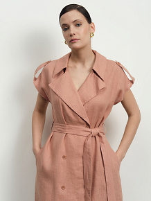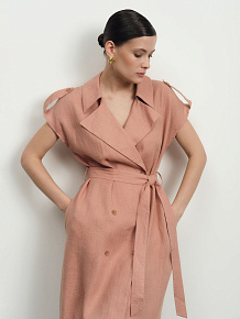 Застёжка на пуговицы, пояс для регулировки посадки, боковые карманы, аккуратные швы, легкая фактура ткани.