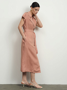 Приталенный силуэт с длиной миди и V-образным вырезом. Лаконичный крой подчеркивает фигуру и создает гармоничный силуэт.