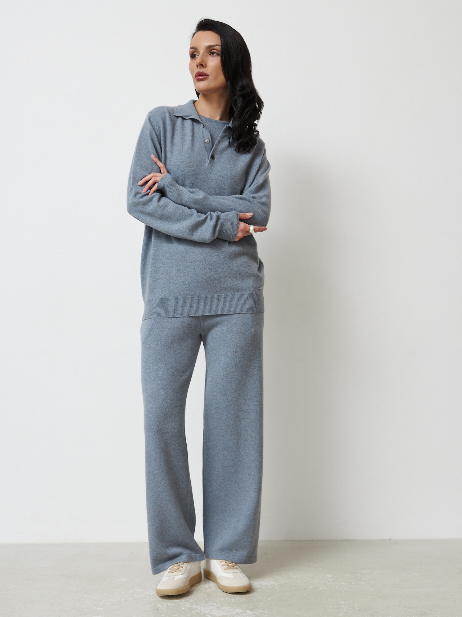 Брюки отлично сочетаются с джемперами, водолазками и кардиганами. Подходят для создания уютных повседневных образов и комплектов в стиле casual. Гармонично смотрятся с кедами, лоферами или ботинками.